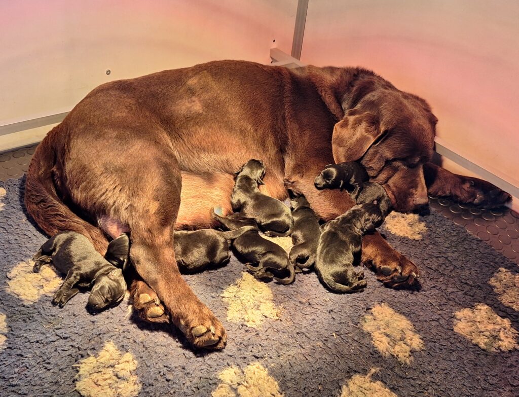 Tous les parents sont testés pour les maladies génétiques liées à la race et préconisées par la SCC, l’identité génétique est également réalisée ainsi que, pour les labradors, les radios hanches et coudes pour les dysplasies et les contrôles oculaires tous les 2 ans.